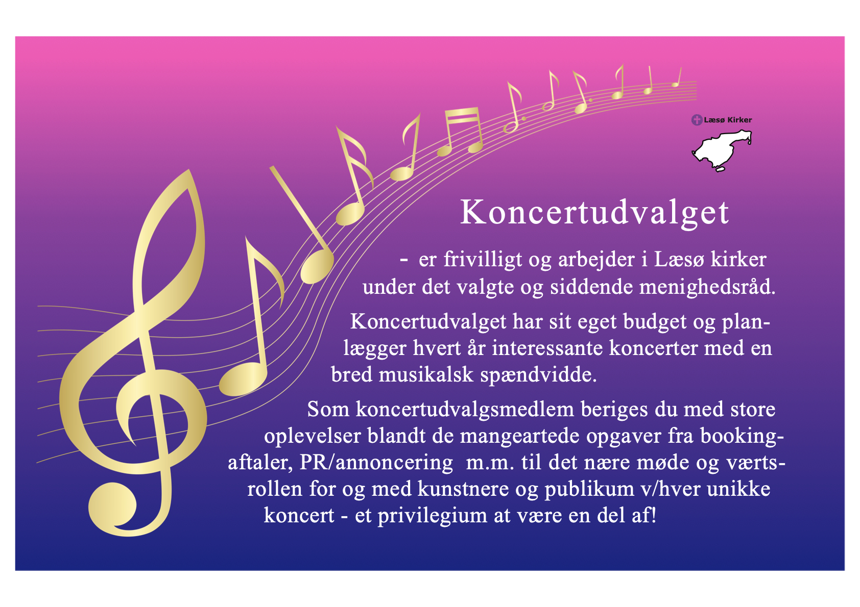 Rigtig god fornøjelse ønsker Koncertudvalget v/Læsø kirker.